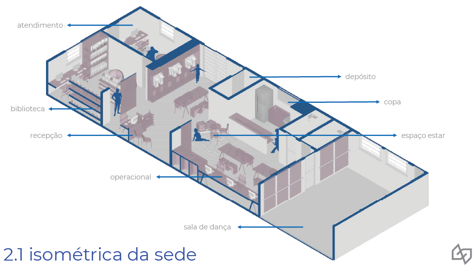 - Área comum: O Espaço de Estar e a Recepção criam um ambiente acolhedor e convidativo, fortalecendo o senso de comunidade e pertencimento para todos que frequentam a sede do Projeto Griot.
