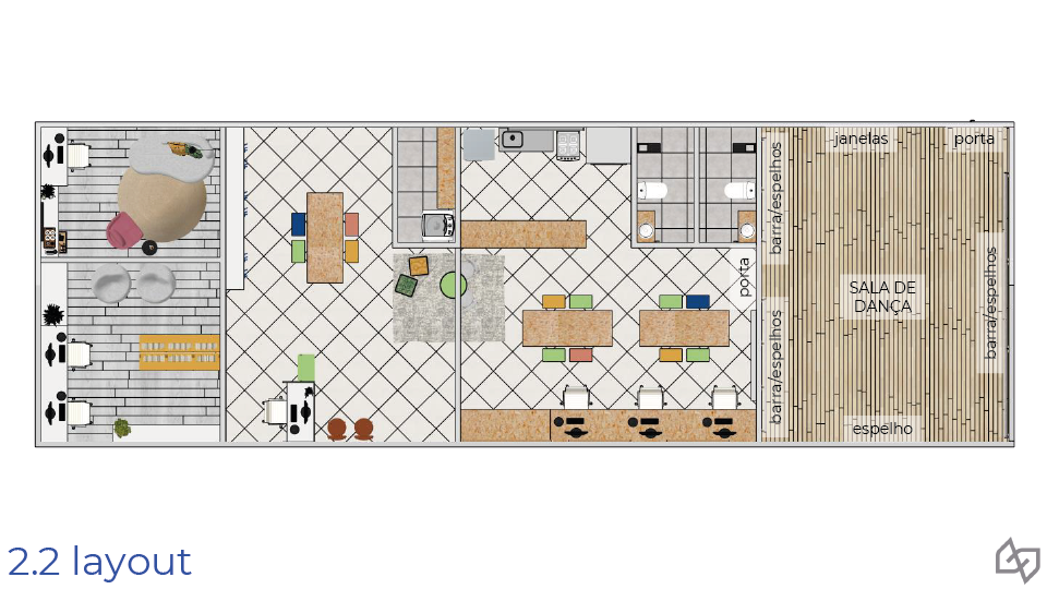 - Refeitório: Um ambiente adequado para alimentação e socialização, a nova cozinha permite preparar alimentos e armazenar itens de forma segura e higienica. Além disso os alunos também ganham um espaço para lanchar e confraternizar